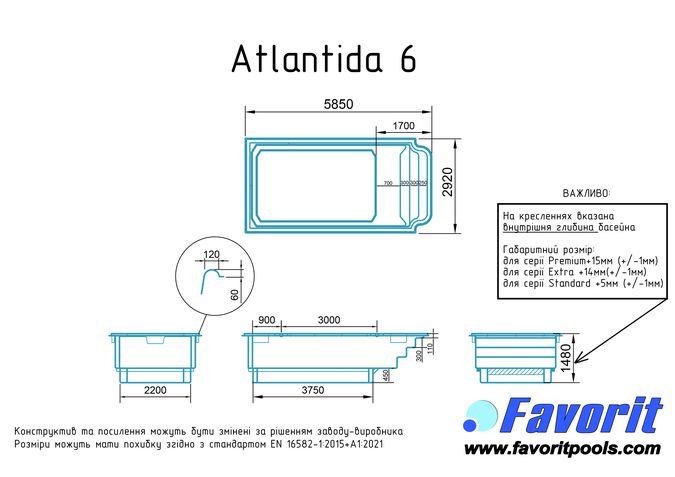 «Атлантида» - це витончений та зручний басейн у класичному стилі. Він не займе багато місця на Вашій ділянці, але принесе радість та незабутні емоції Вам та Вашим близьким. ПЕРЕПАД ГЛУБИНИ – рішення для батьків, які хочуть навчити плавати своїх дітей. Плавання з ранніх сприяє оздоровленню, фізичному розвитку, гартуванню та привчає до здорового способу життя. Басейн «Атлантида» створить у Вашому будинку мальовничий острівець для відпочинку.